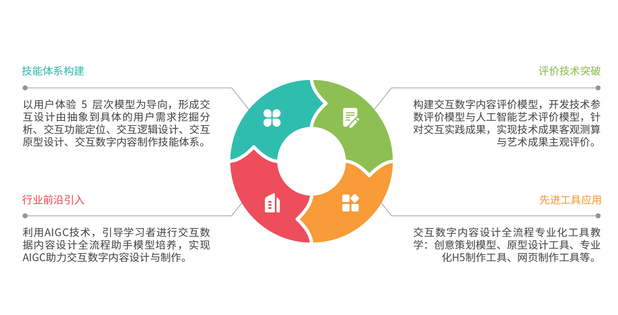 交互数字内容设计实验积极引入行业最前沿的AIGC技术,赋能学习者掌握运用AI技术驱动交互数据内容的设计全流程;搭载技术参数评价模型与人工智能艺术评价模型相结合的评价体系,实现交互数字内容评价技术的突破。交互数字内容设计实验为交互数字内容设计领域提供了全方位的学习与实验支撑,培养适应未来数字内容产业发展需求的专业人才。