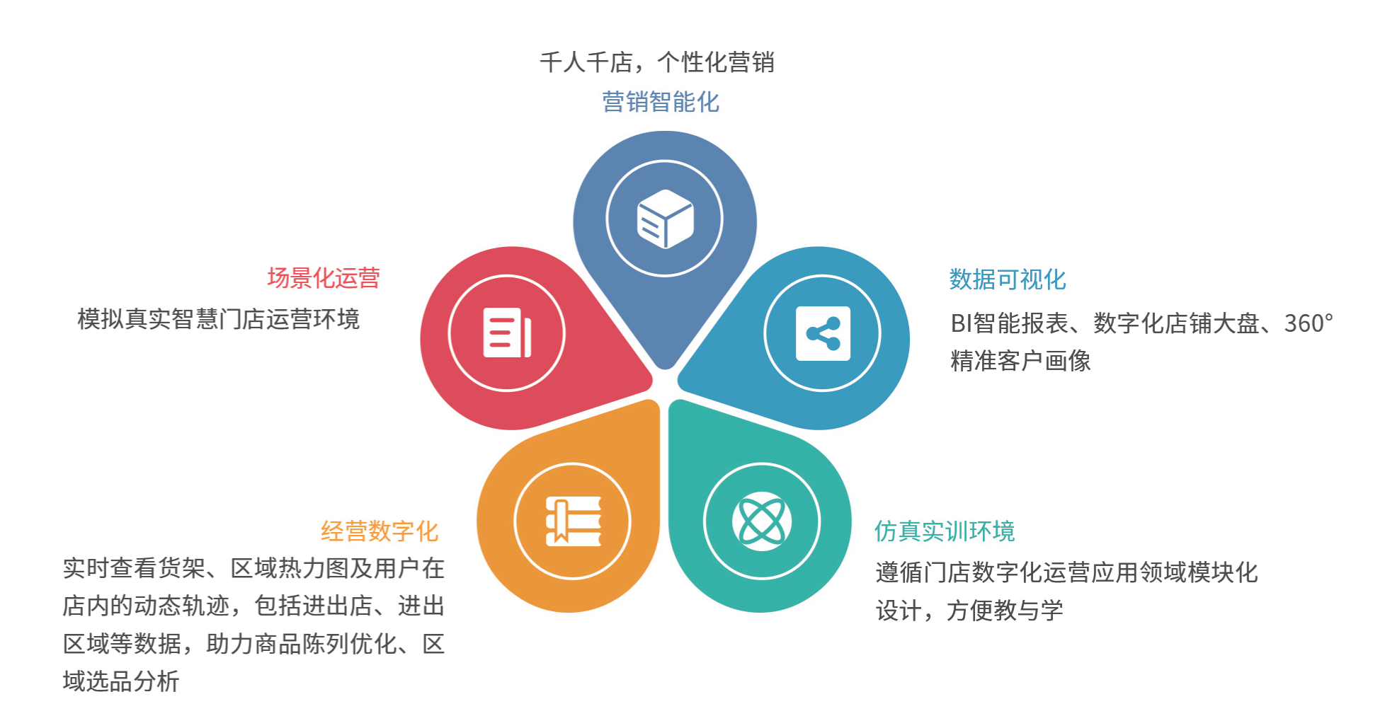 数字化门店运营实训依托真实智慧门店运营环境,将门店的数字化运营流程、营销流程和管理流程无缝整合,利用模拟技术再现真实工作场景,以智慧门店工作任务为驱动,通过门店数字化运营过程中的门店布局、库存管理、商品销售、会员管理、数据分析等实际业务进行实践,并根据用户足迹、商品拿放追踪等用户行为数据形成360°用户精准画像,同时利用BI数据报表实时反馈门店运营数据,为门店下一步运营及营销提供决策支持,形成运营闭环。通过实训,学生能够沉浸式体验智慧门店的运营管理,场景化、数字化、模块化的实践模式将门店运营的理论知识与实际操作相结合,为学生提供更深入、更实用的学习实践体验。