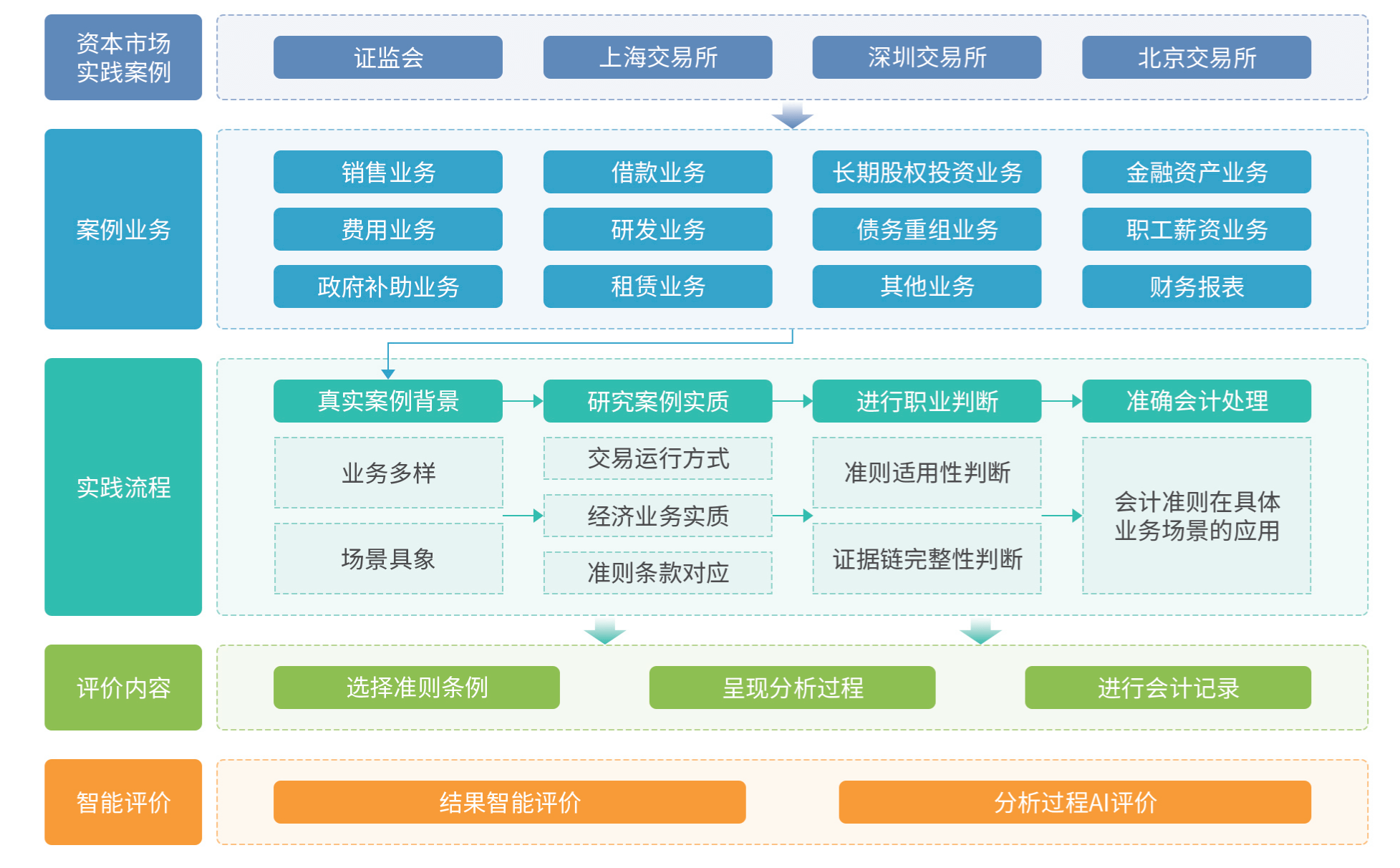 IPO企业财务实践教学平台立足于会计准则适用性,紧贴证监会以及沪深京三大交易所的实际监管案例,内容专注于挖掘并梳理企业在遵循会计准则时面对的多元业务结构和交易运作机制,采用互动性的“以案释法”方法论,打造高度仿真且沉浸式的学习体验场景。学生对标企业会计准则的各项明确条文及其内在的逻辑体系,旨在精准识别各类交易和事项的本质特征,从而作出严谨的会计判断和恰当的账务处理决策。着力解决如何在不断演化的多元化商业模式与行业背景下,将原则导向的企业会计准则灵活而准确地应用于实际业务之中,全面提升学生的专业判断技巧、精确记账能力和前瞻性的财务规划能力。