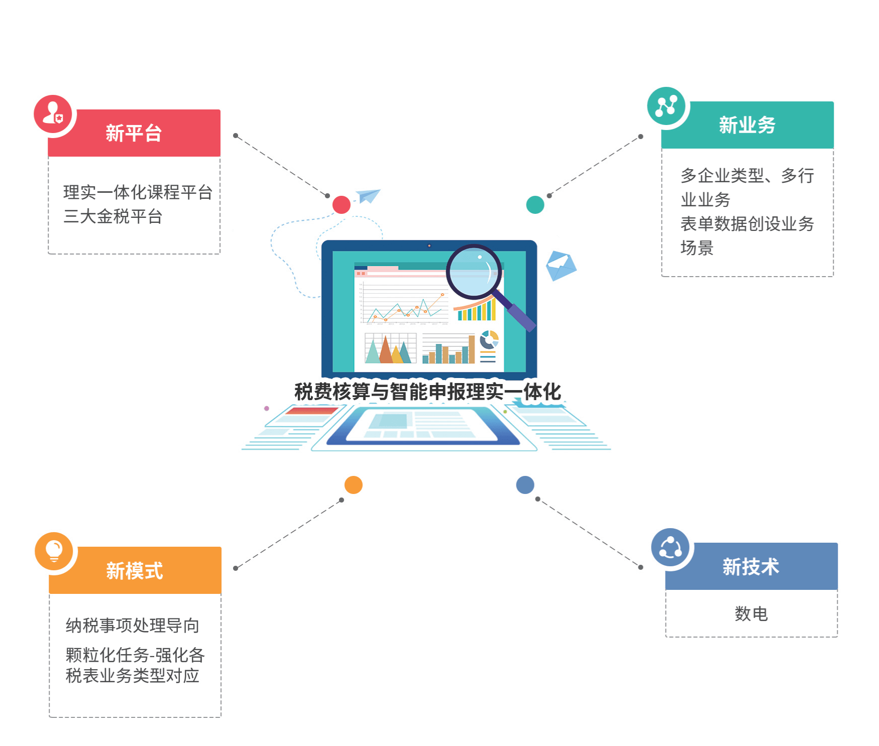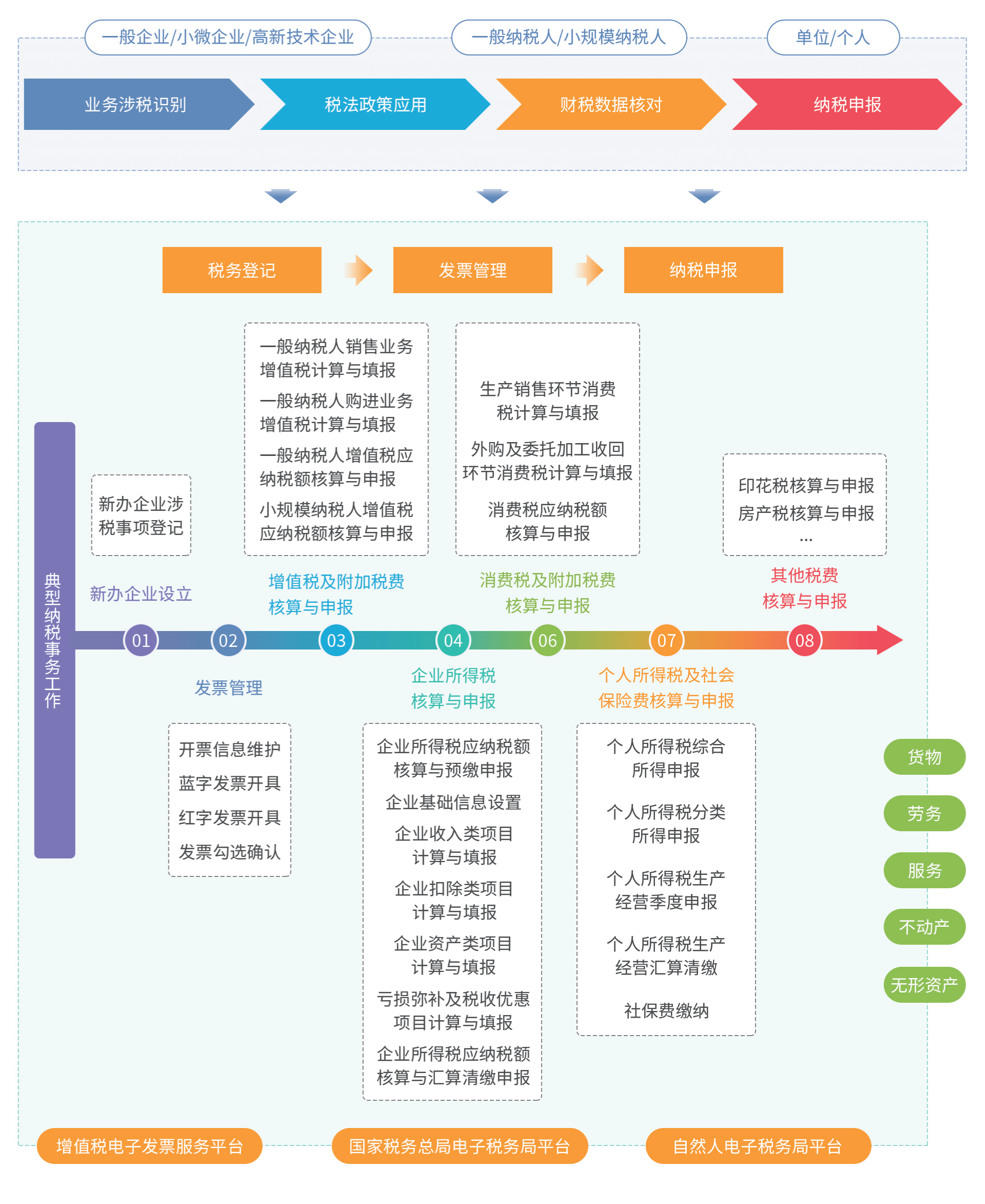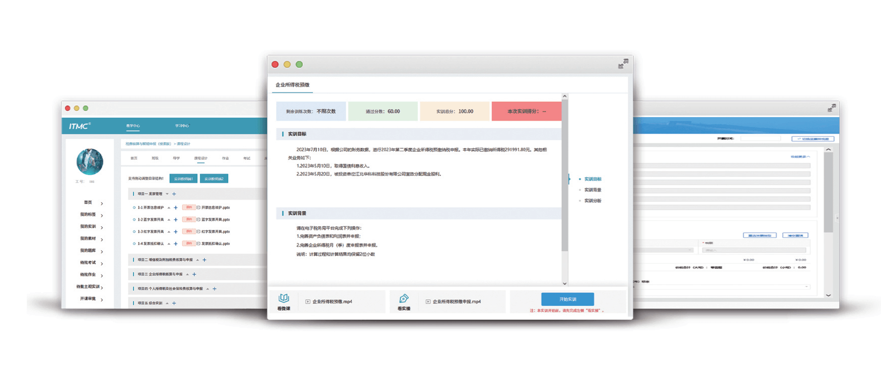税费核算与智能申报理实一体化软件针对会计事务专业的核心课程《税费核算与智能申报》,紧密围绕国家通用电子税务局平台,以税法应用为切入点,构建“教学做测赛”一体化实践教学平台。主要内容结合税务会计岗位实际,涵盖发票管理、各税种(增值税、企业所得税、个人所得税、社保费、消费税及小税种)计算、申报全流程,旨在引导学生从企业业务视角深刻理解税法内涵,熟练掌握开票与纳税申报操作,培养学生依据法律法规进行涉税判断、纳税申报处理,全方位锻炼其在真实业务情境下的核心税务事务处理技能。