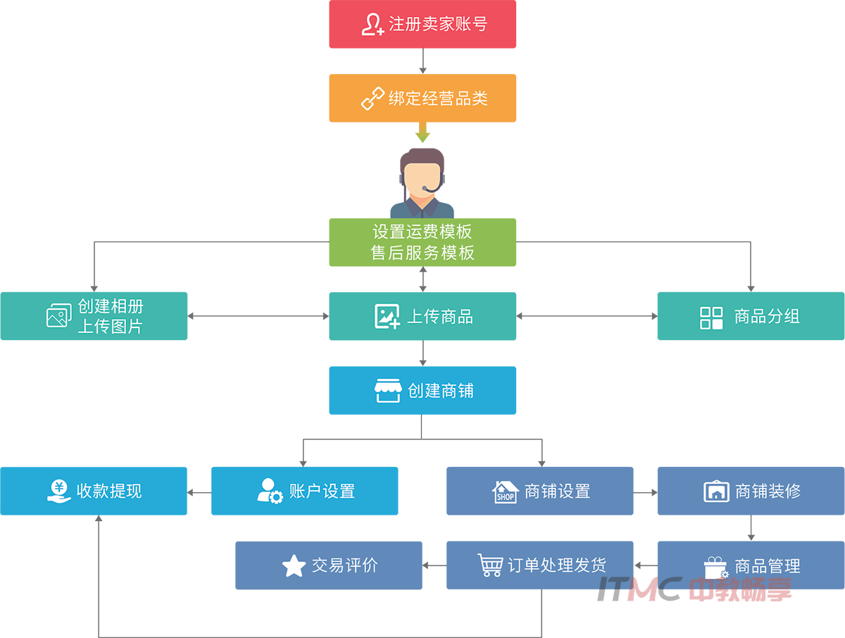“DH跨境电子商务平台实训系统”基于敦煌平台的运行原理进行分析,以跨境电子商务活动为背景,设置了注册及认证、产品发布、商铺管理、交易沟通、装修与优化、运营与推广、数据分析七大任务模块,旨在培养和锻炼学生敦煌平台基本操作能力,同时,为应用技术型跨境电子商务人才的培养和储备打下基础。