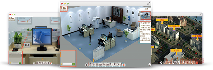系统利用沉浸型虚拟现实技术,立足出口方和进口方两个不同的角度,选取FOB、CFR、CIF三种目前国际贸易业务中常用的贸易术语,结合板材、橡胶、服装等不同行业的背景资料,采用常见的T/T、L/C付款方式,以真实的岗位标准为要求,用真实企业进出口业务内容为载体,按实际工作业务流程进行训练。系统以丰富有趣的游戏界面为依托设计任务场景,按企业工作相关真实场景设置海关、银行、税务、工商、检验检疫、物流公司等单位,采用基于典型工作任务驱动的方式,利用角色转换、上岗操作、业务路线选择、签章等功能,实现融职业认知、职业判断、业务处理、实务操作、评价反馈、教学管理为一体的实训、实习教学功能。