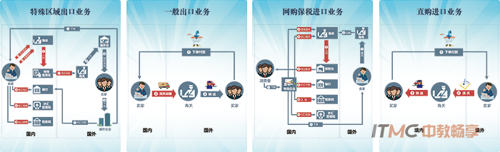 “跨境电子商务进出口实训系统”利用3D虚拟现实技术,按跨境电子商务企业真实业务处理的需求搭建了海关、银行、税务、工商、检验检疫、物流公司等场景;以特殊区域出口、一般出口、网购保税进口、直购进口四种业务模式为分类基础,基于办公用品、服装、橡胶、奶粉等不同行业,内置“清单核放”“清单核放、汇总申报”两种跨境独有通关方式,配有“9610、1210、1239”三种跨境专用监管代码,设置“限值内70%征收”“限值外全额征收”以及“特殊货物特殊确定方式”等不同的跨境税率选择环境,设置丰富的实训任务。