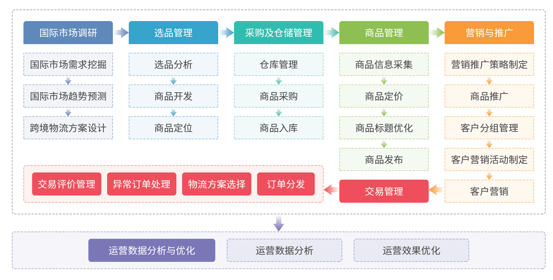 跨境电商运营沙盘实训主要面向跨境电商运营岗位(群),对接外贸新业态、新模式和产业转型与实践创业的需要,根据跨境电商企业真实业务流程,构建仿真的跨境电商运营环境,采用人机对抗的方式模拟卖家角色完成3轮6期的经营过程,包括企业市场调研、运营策略制定、选品与定位、仓储与采购、商品管理、物流管理、营销推广、订单管理、财务管理等,进而系统性建立跨境电商运营思维,强化跨境电商综合运营能力。