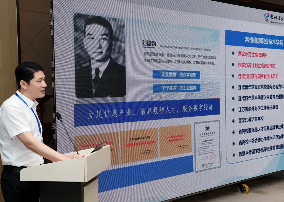 5月19日,职业教育信息安全技术应用专业群国际教学资源建设研讨会在常州信息职业技术学院顺利召开。常州信息职业技术学院校长徐建俊、巴基斯坦驻中国大使馆科学参赞穆罕默德·汗、开伯尔-普什图省技术与职业教育培训局局长曼苏尔·卡伊瑟尔、常州信息职业技术学院副校长陶大伟、常州机电职业技术学院电气工程学院副院长陈小艳、常州信息职业技术学院网络空间安全学院院长杨诚、中教畅享科技股份有限公司总经理王鹏,以及来自全国各地多所相关院校的领导和骨干教师莅临参会。
