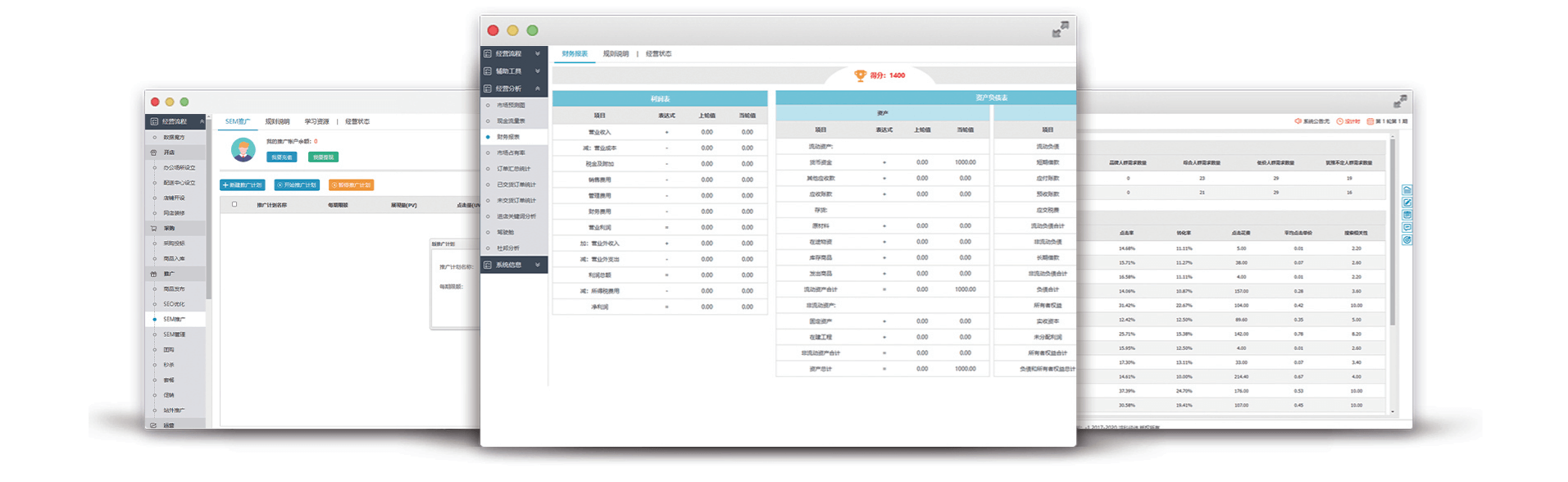 网店运营沙盘实训采用大数据建模技术模拟市场环境,内置动态的市场模型及智能买家,通过人工智能模拟真实电商平台的流量分配机制和订单成交规则,构建出一个高度贴近真实市场的仿真环境。在该环境中,学生需基于一家准备开展线上销售业务的企业情境进行实战操作,利用一定的初始虚拟资金,在动态的市场环境中,通过沙盘博弈的方式,展开连续多轮的商业竞争,完成市场调研、开店、采购、推广、运营、财务管理等一系列经营流程。通过参与动态真实市场的实战演练,有效提升学生的商业敏感度和持续盈利能力,帮助其更深刻地理解动态市场的复杂性和多变性,为未来的商业成功奠定坚实基础。